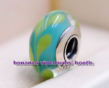 925 Sterling Silver Handmade Bead Aqua / Green Swirly Swirl Murano Glass Charm