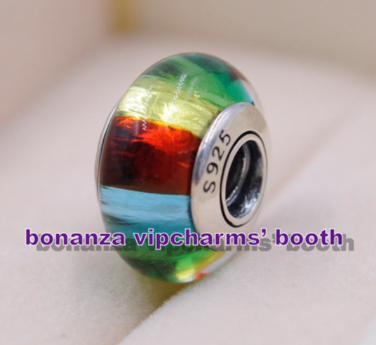 925 Sterling Silver Handmade Glass Bead Lampwork Rainbow Murano Glass Charm