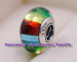 - 925 Sterling Silver Handmade Glass Bead Lampwork Rainbow Murano Glass Charm