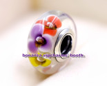 - 925 Sterling Silver Handmade Lampwork Three Color Flowers Murano Glass Charm