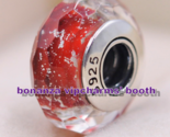 - 925 Sterling Silver Handmade Moments Red Shimmer Faceted Murano Glass Charm