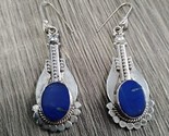 - 925 Sterling Silver Lapis Lazuli Dangle Hook Earrings 2.25 In Free Shipping