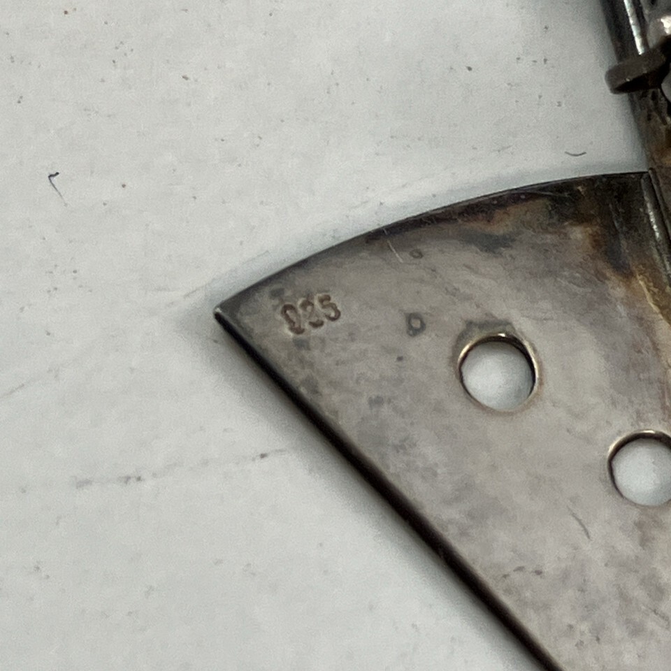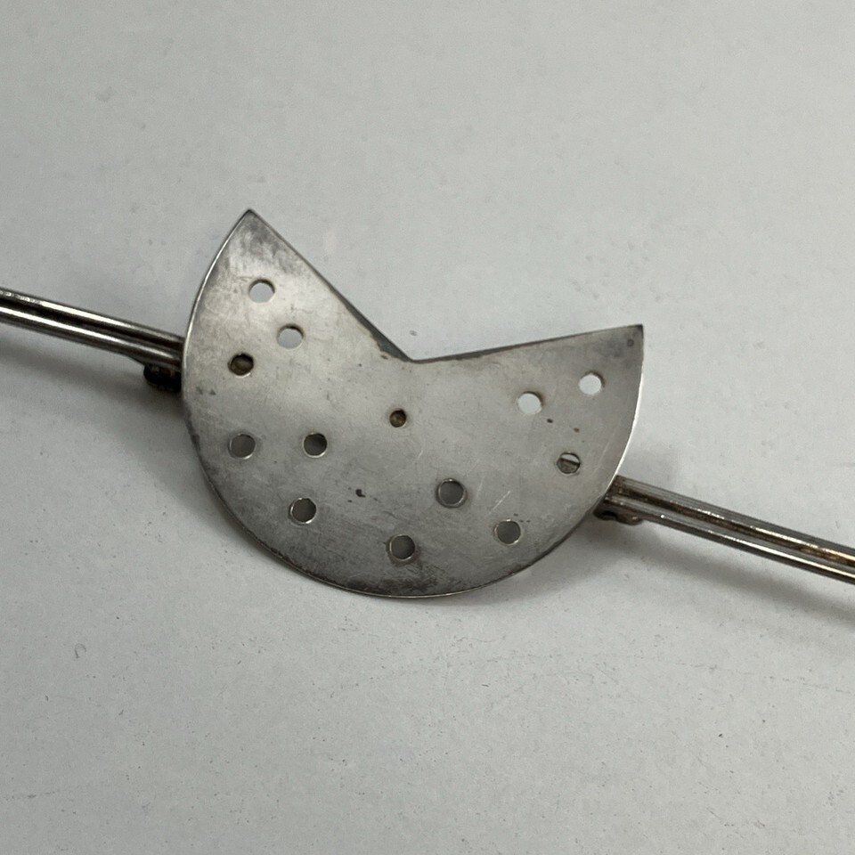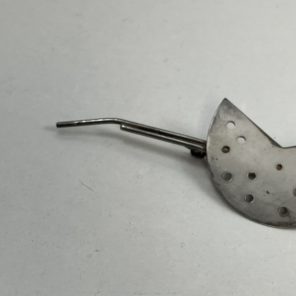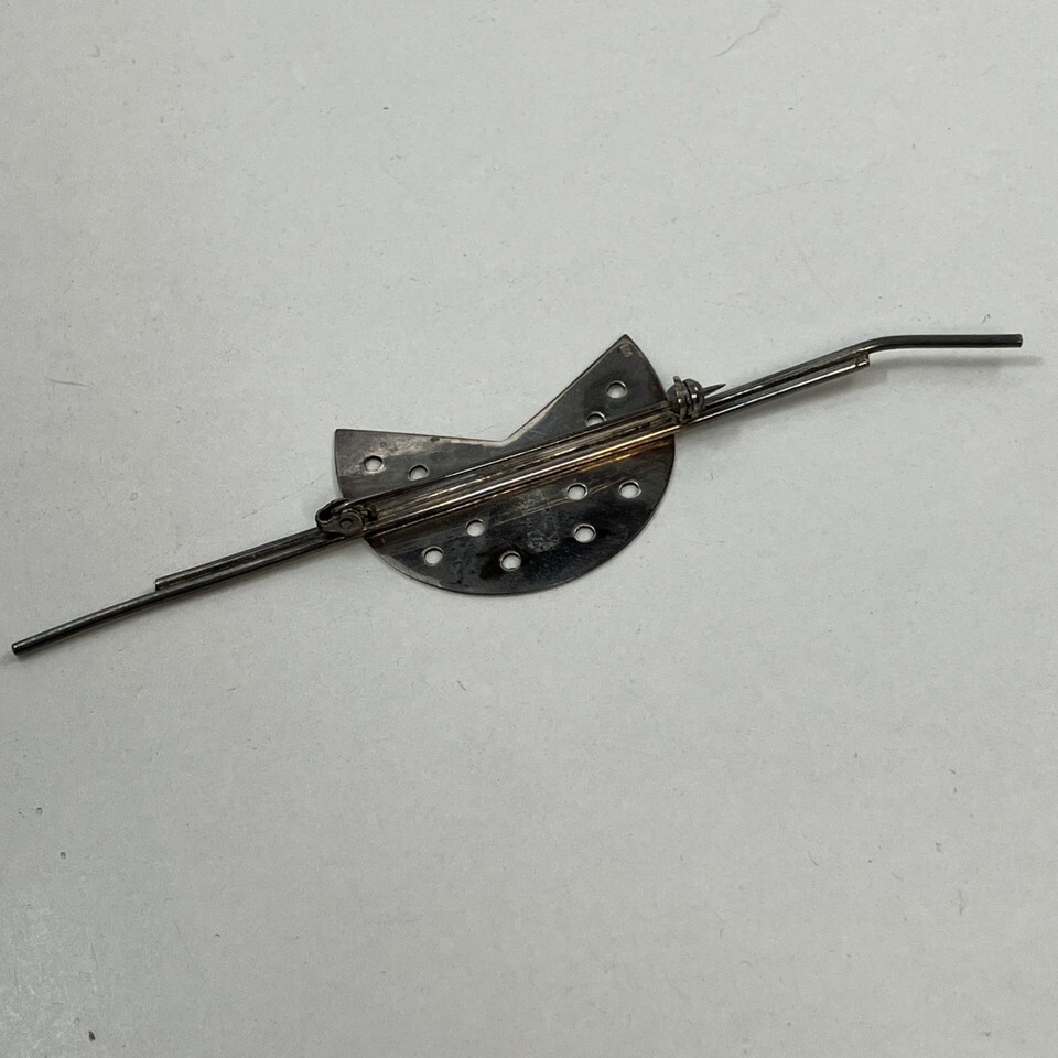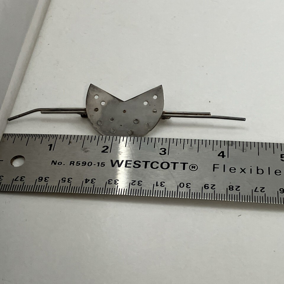 This 925 Sterling Silver Modernist Abstract Cat with Whiskers/PAC Man/Moon Pin is a stylish and unique piece of jewelry. The abstract shape that we really have no clue as to what it is, offers a modern and artistic vibe. Crafted with high-quality sterling silver, this pin is perfect for those who appreciate abstract design. The item length of 4.25 inches makes it a versatile accessory that can be worn on a lapel, collar, or even as a statement piece on a bag or purse.