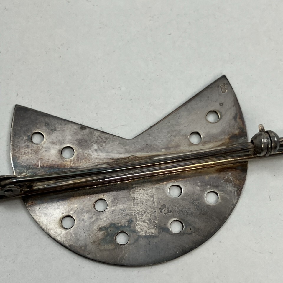 - 925 Sterling Silver Modernist Abstract Cat With Whiskers/Pac Man/Moon Pin