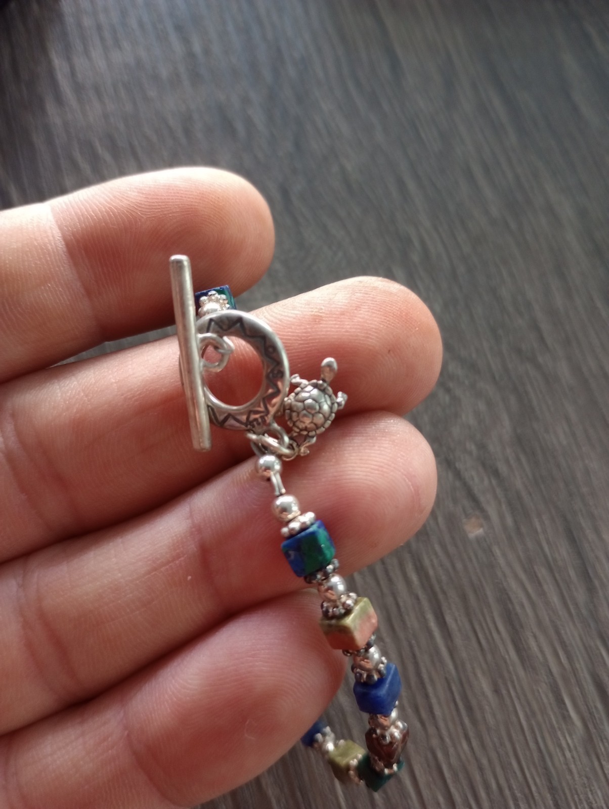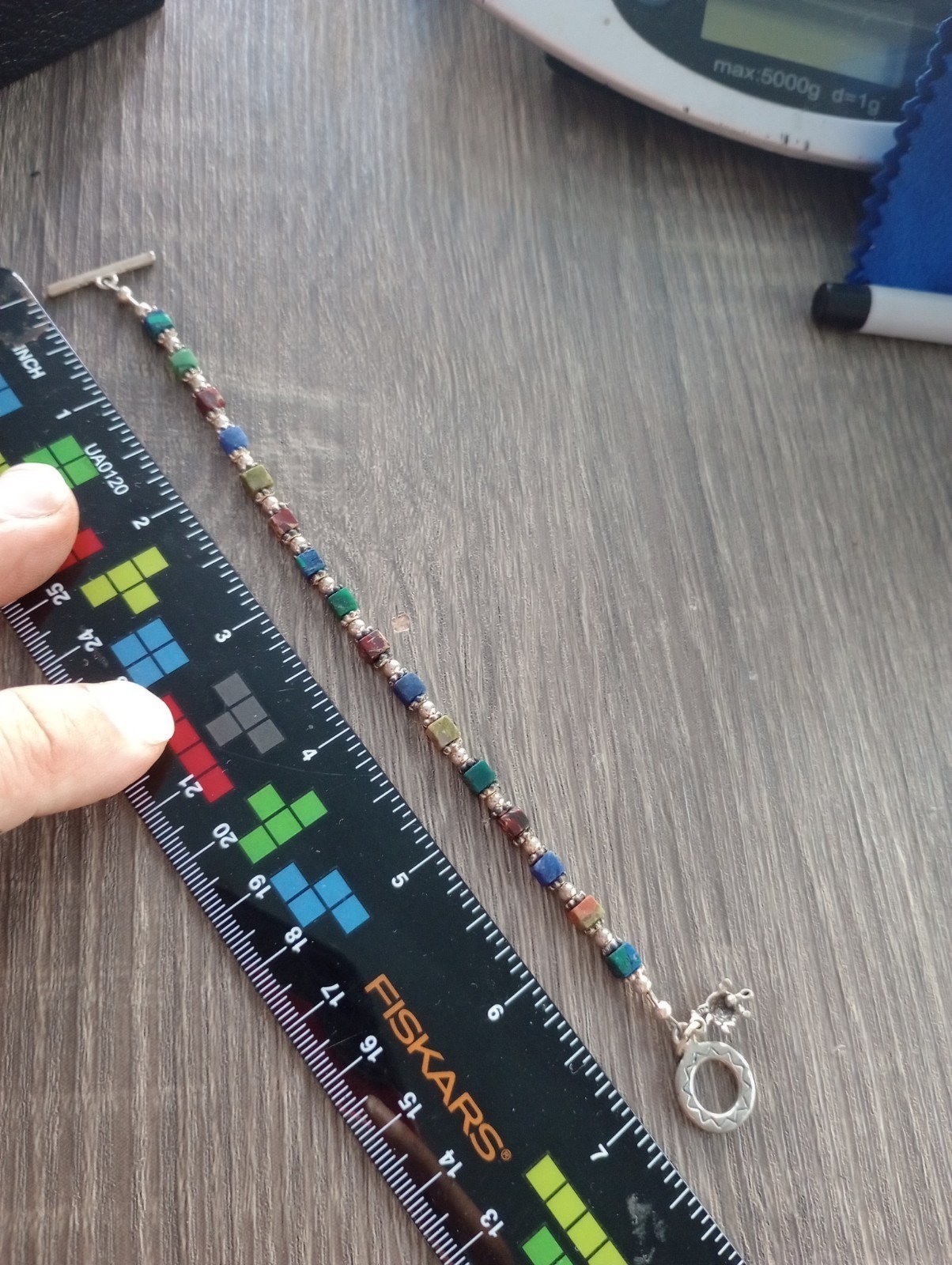 - 925 Sterling Silver Multicolored Toggle Link Southwestern Bracelet 7.5 In