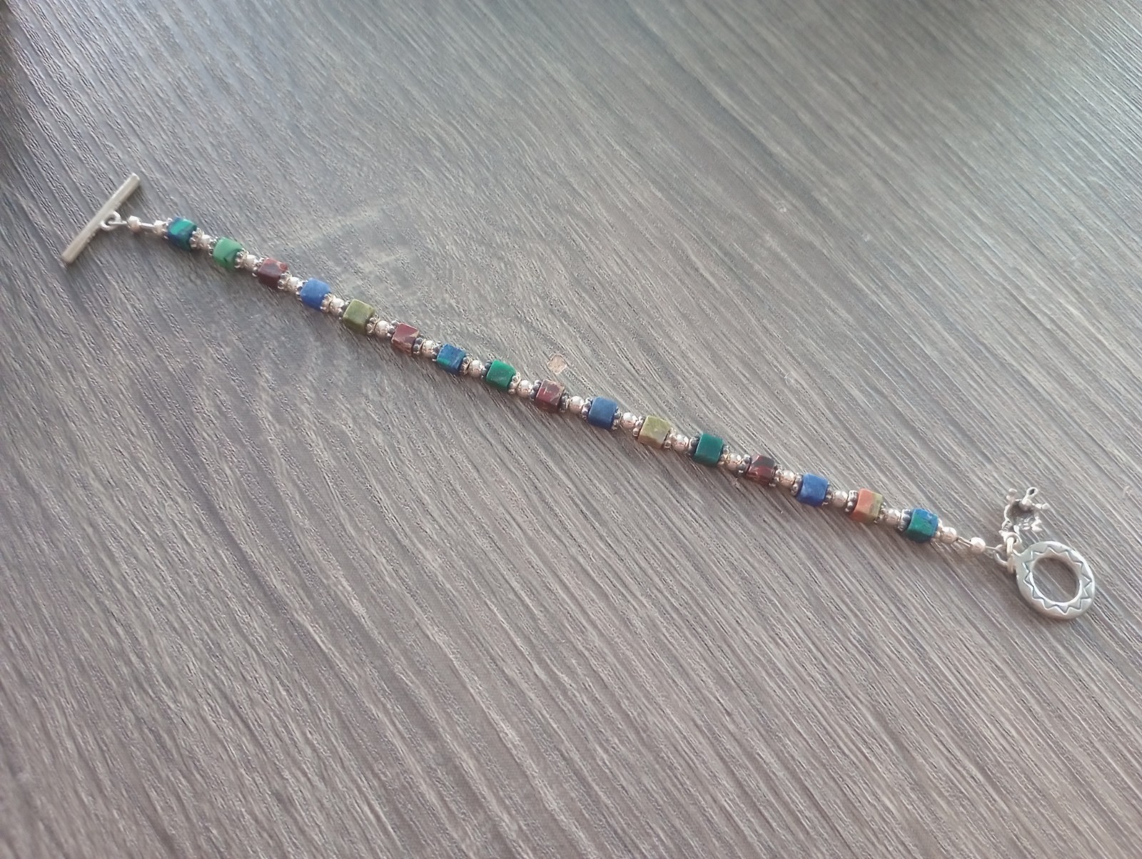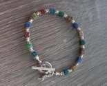 925 Sterling Silver Multicolored Toggle Link Southwestern Bracelet 7.5 In