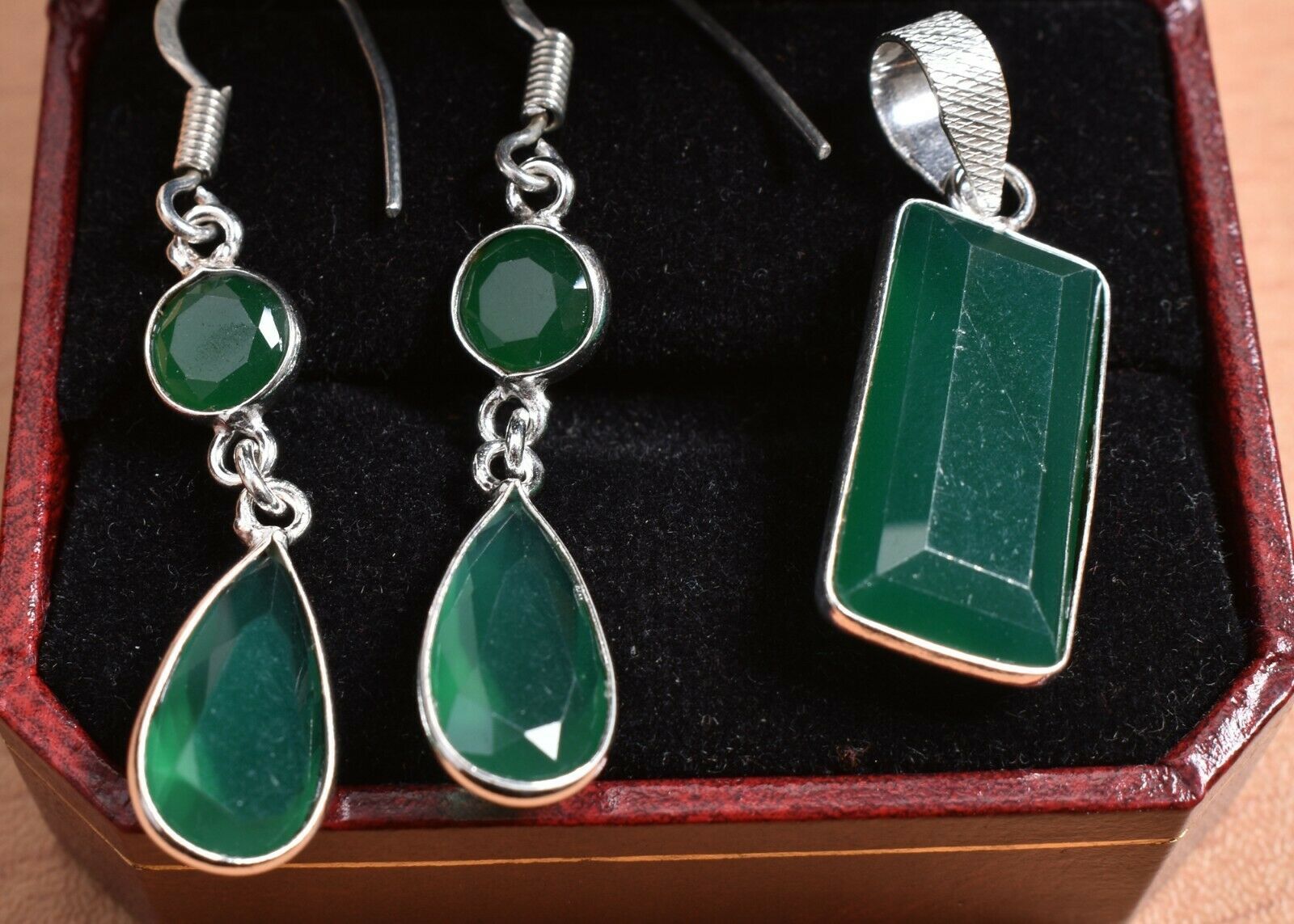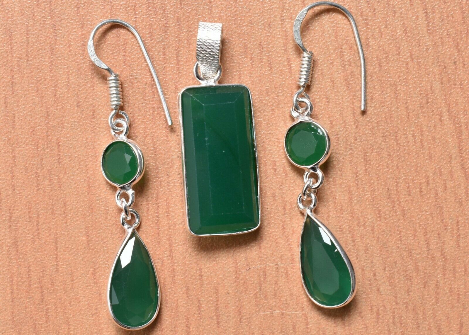 925 Sterling Silver Onyx Gemstone Handmade Necklace Earrings Women Gift SET-1045