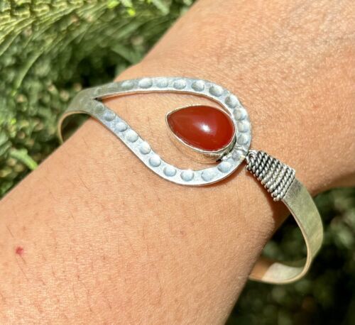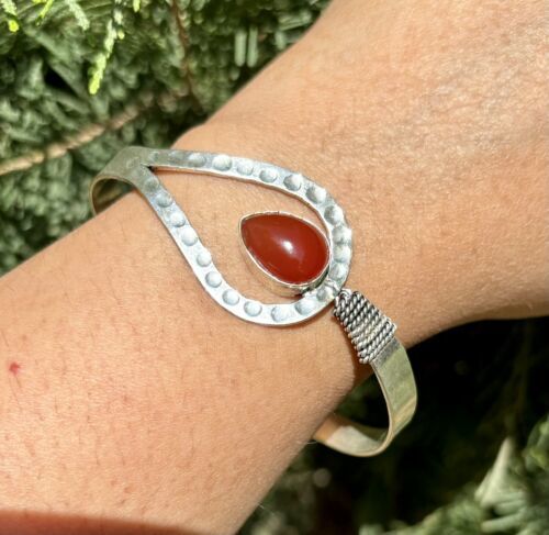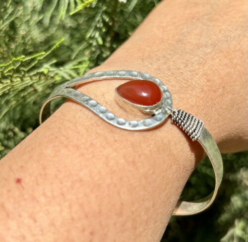 925 Sterling Silver Plated Natural CARNELIAN Cuff Bangle, Bracelet Jewelry 5