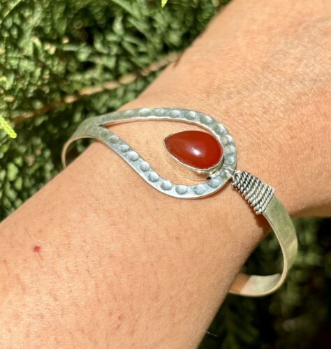 - 925 Sterling Silver Plated Natural CARNELIAN Cuff Bangle, Bracelet Jewelry 5