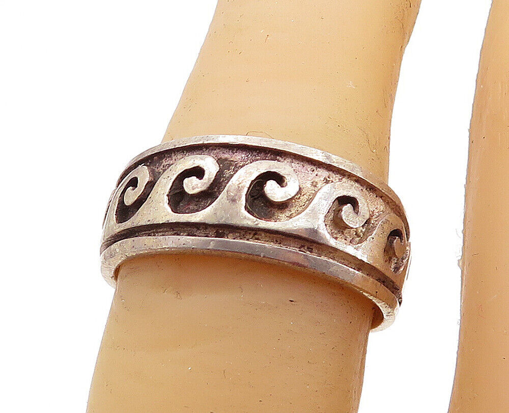 925 Sterling Silver - Vintage Ocean Wave Swirl Pattern Band Ring Sz 6.5 - RG6820