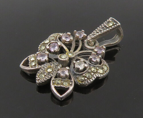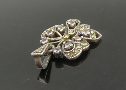 925 Sterling Silver - Vintage Petite Topaz Butterfly Motif Pendant - PT18632