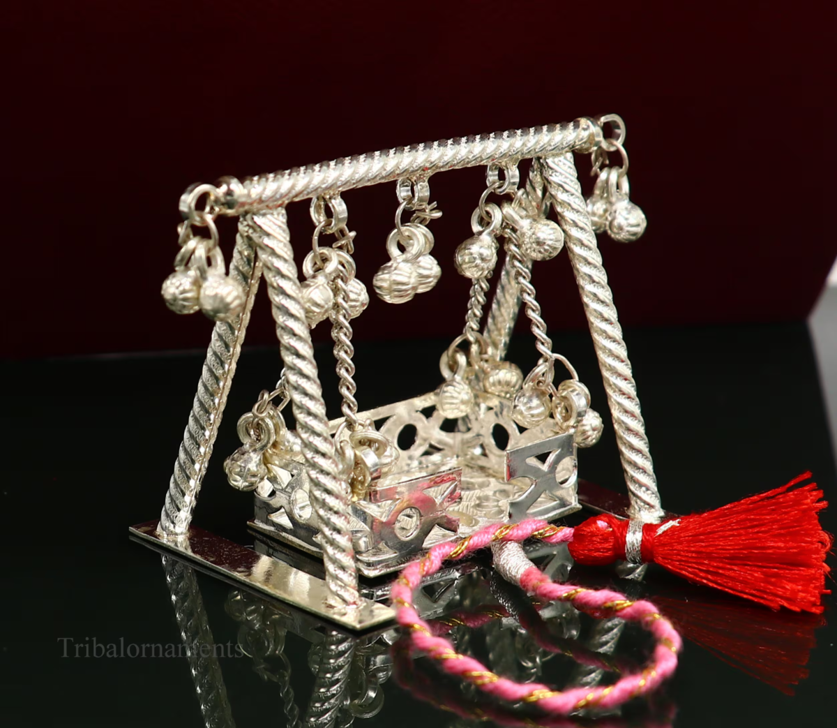 925 sterling silver lord Krishna swing laddu gopal Jhula art su369
