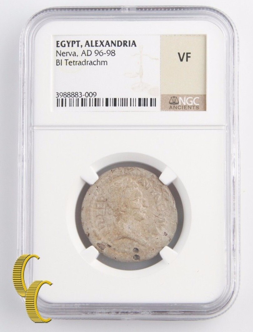- 96-98 Nerva Billon Tetradrachm (VF NGC) Roman Egypt Alexandria Dikaiosyne Dike
