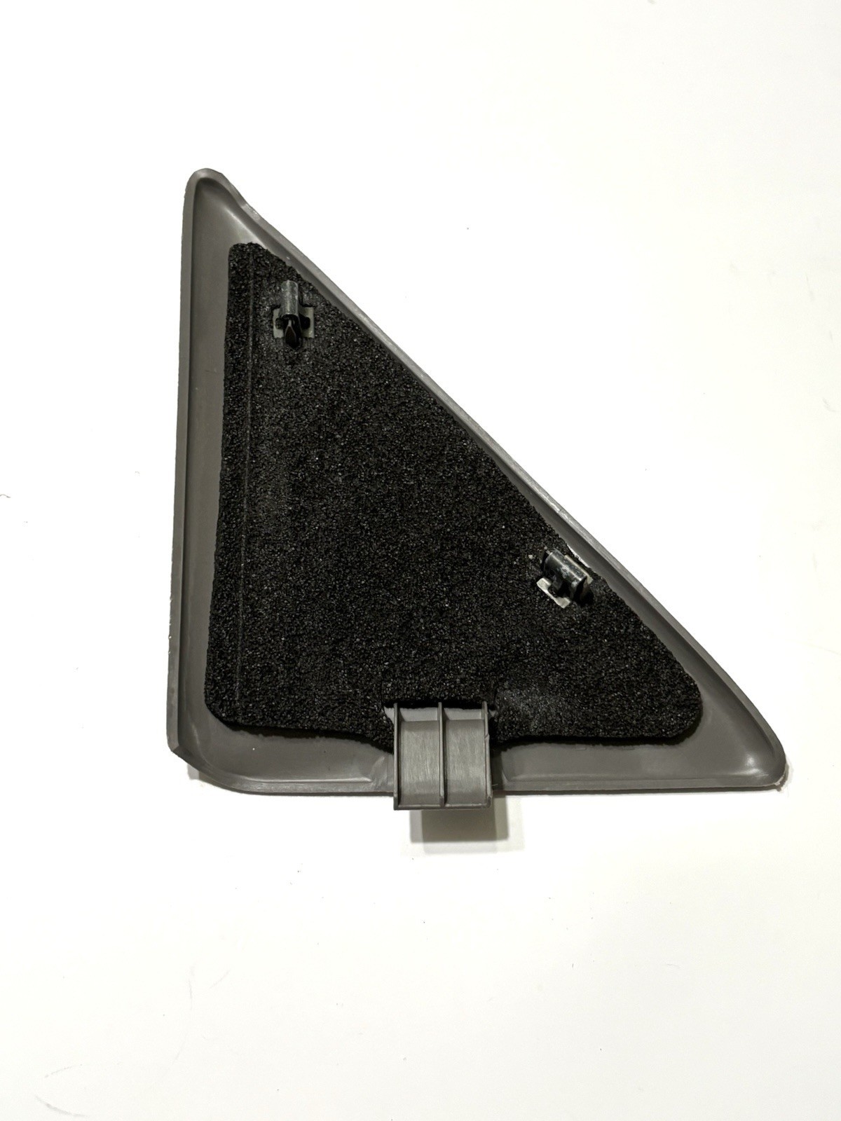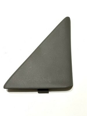 Removed from a 2003 Chevrolet Tahoe. This triangular interior trim panel mounts above the front passenger door panel, covering the interior side of the side-view mirror mounting area.