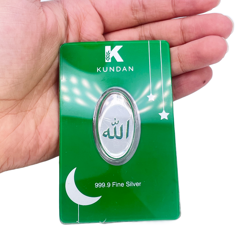 999.9 Pure Silver 5 Grams Green Coloured Allah Pendant Sealed Pack