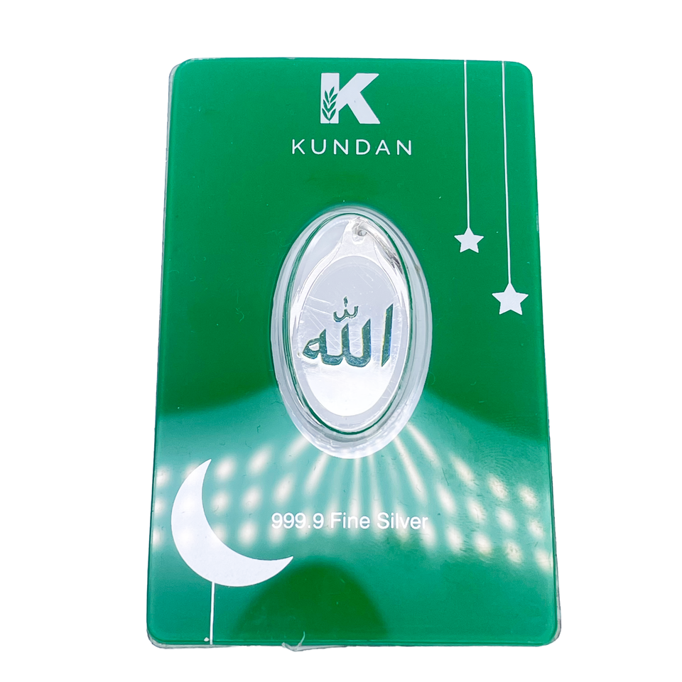 - 999.9 Pure Silver 5 Grams Green Coloured Allah Pendant Sealed Pack