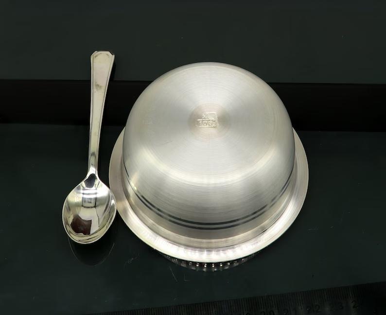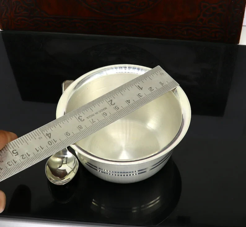 - 999 solid sterling silver bowl spoon stay baby/kids healthy, silver vessel sv101