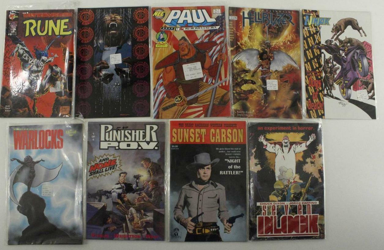 - 9PC Lot Mixed Comic Books Seven Block Sunset Carson Punisher POV Hellblazer