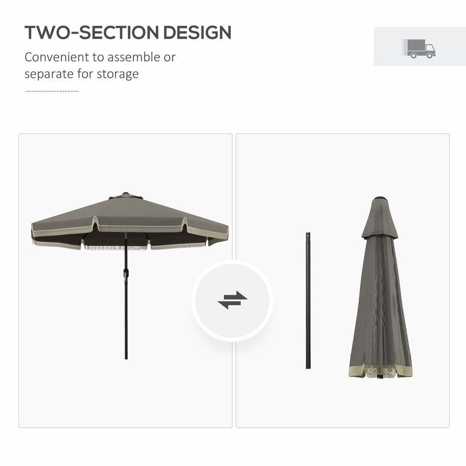 Easy Open, Safe Shut: Use the included hand crank to easily open and shut your patio table umbrella. It also includes an easy-to-transport two-section design, so it can be carried without taking up as much space.