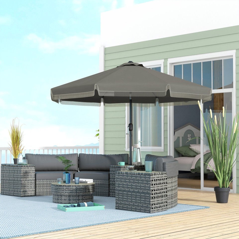 9ft Patio Umbrella: Tilt, Crank & Tassels