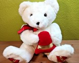 A A White Christmas Teddy Bear Red Bells Santa Plush Stuffed Animal Toy.