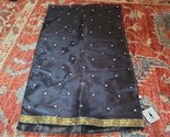 A. BROD Scarf 21" X 72" Embroidered Bead Flower Elegant Black Gold
