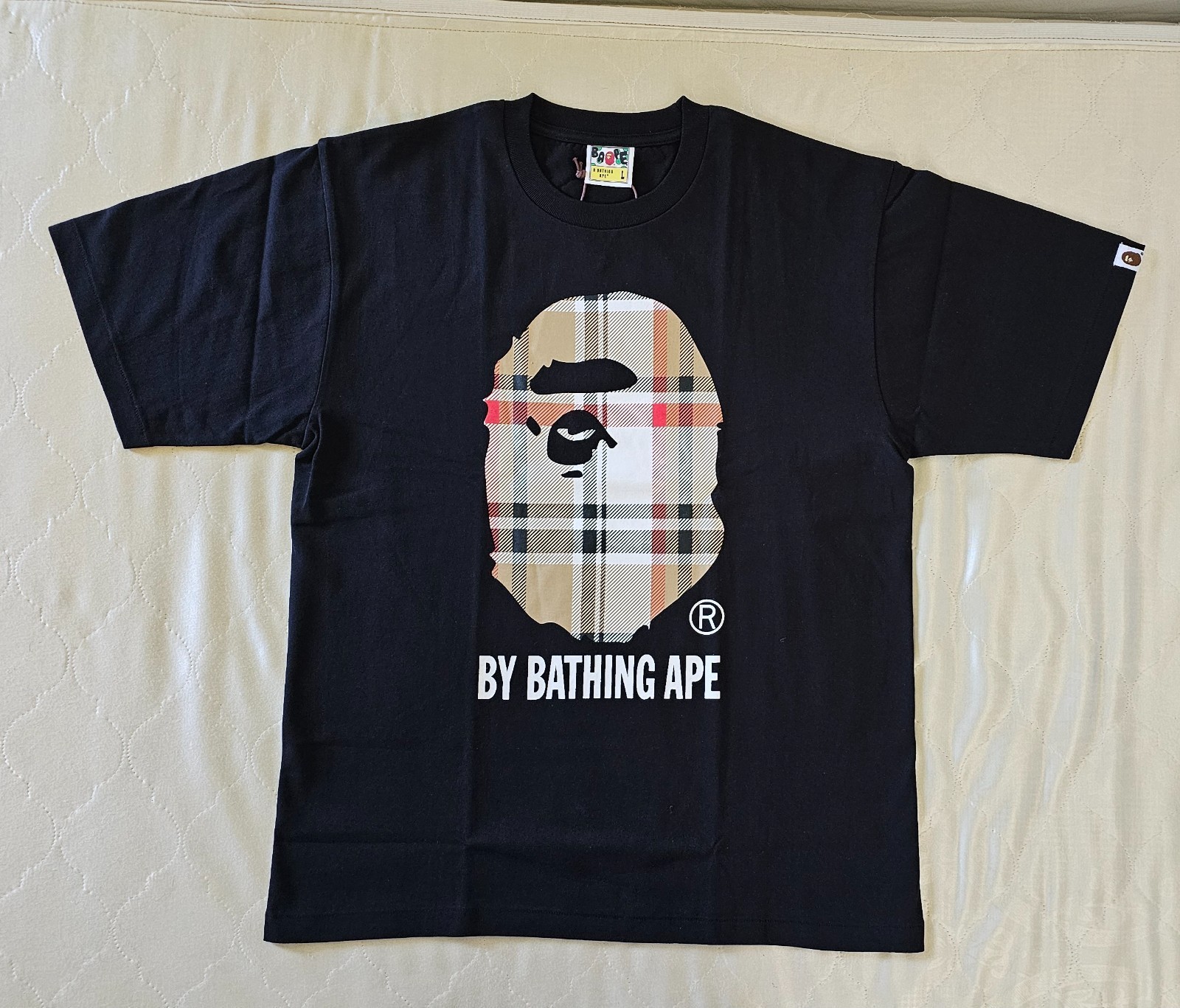 - A Bathing Ape BAPE Check By Bathing Ape Black Tee Brand New 100% Authentic