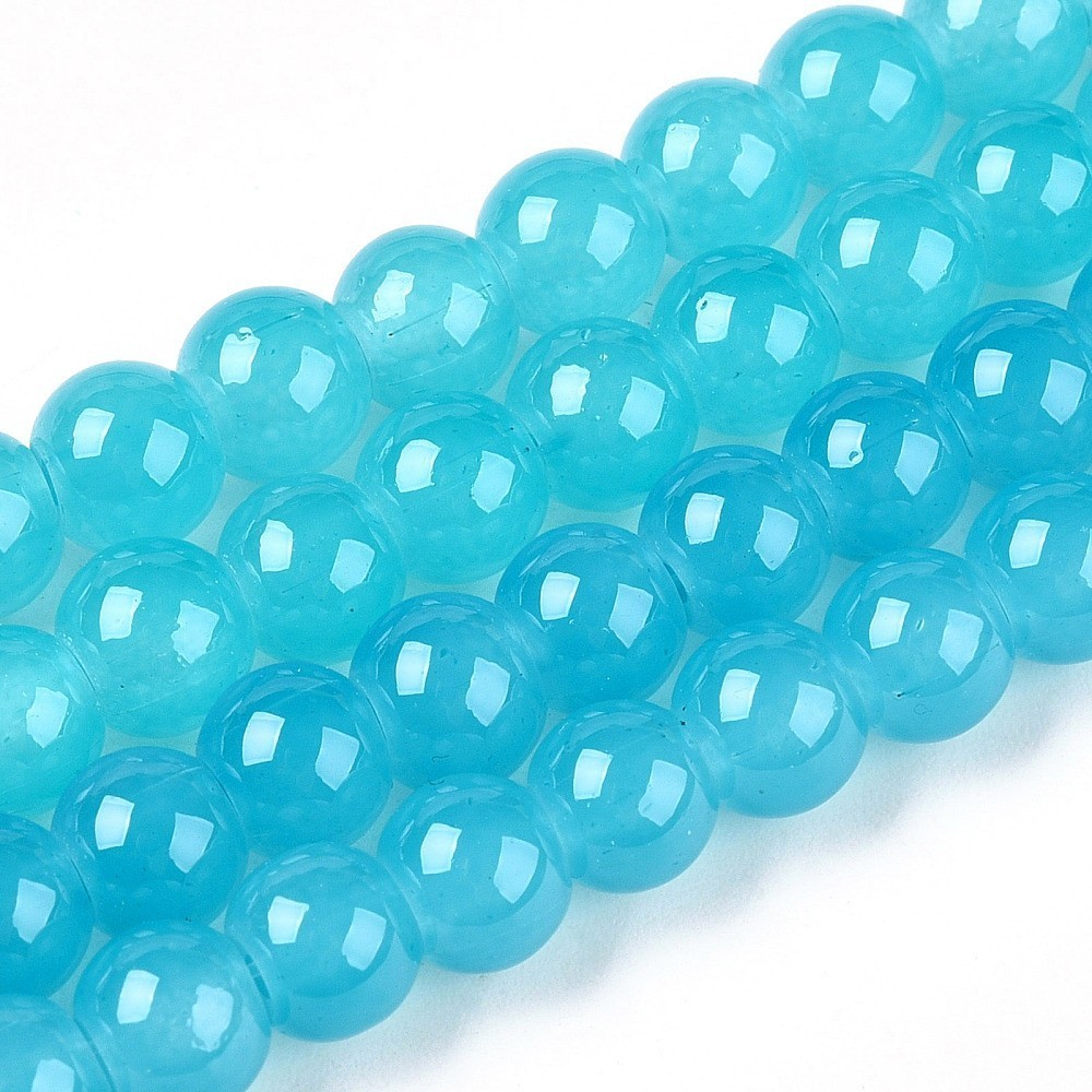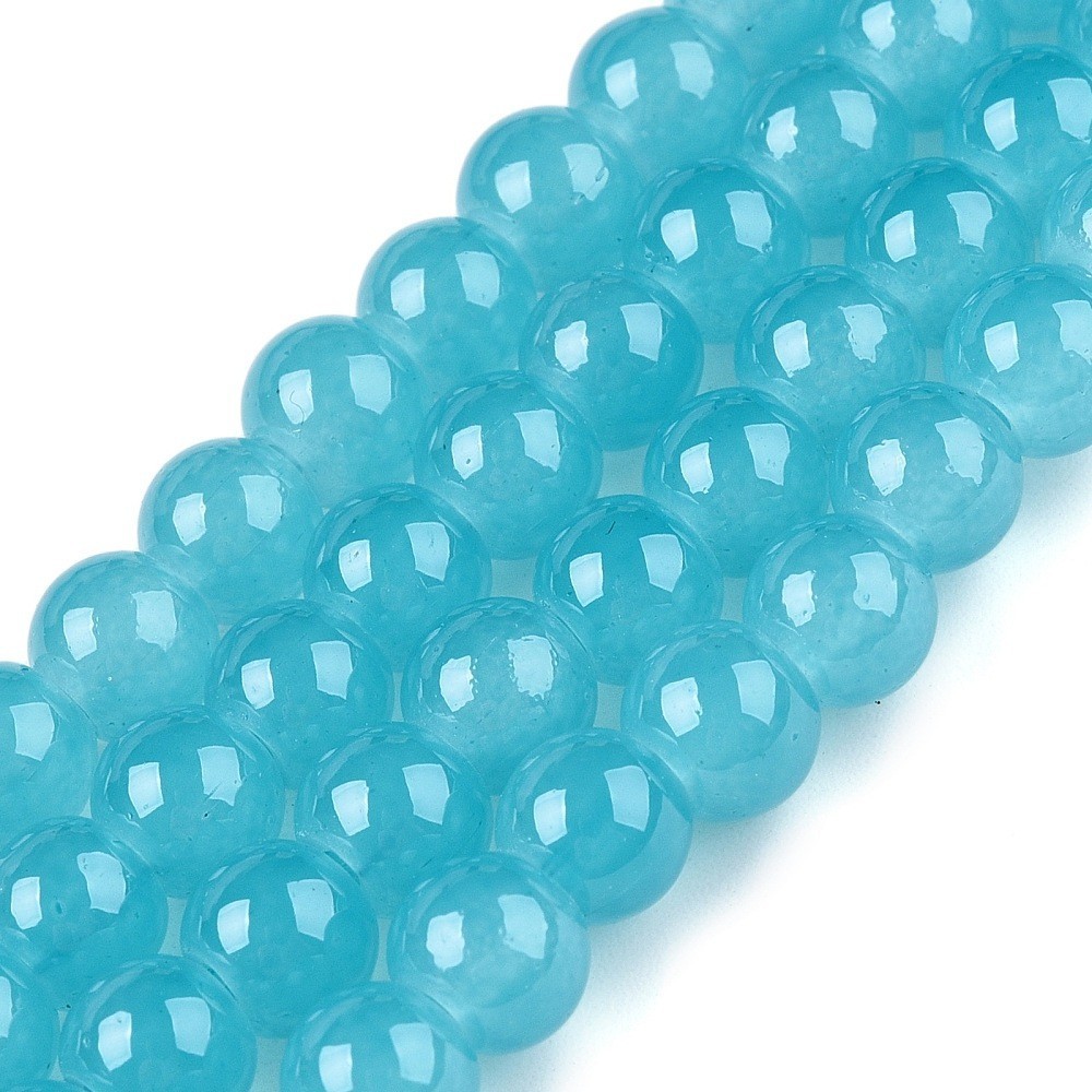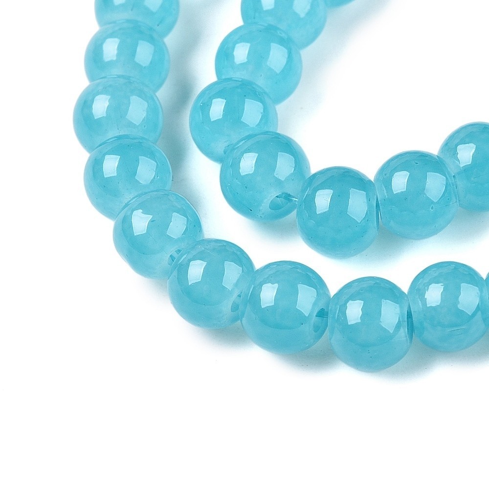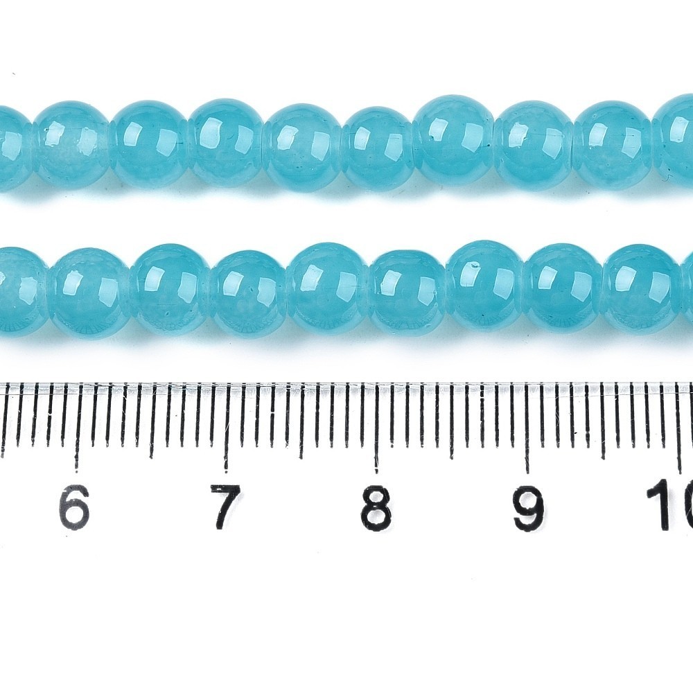 Description: Baking Painted Imitation Jade Glass Round Bead Strands, Turquoise