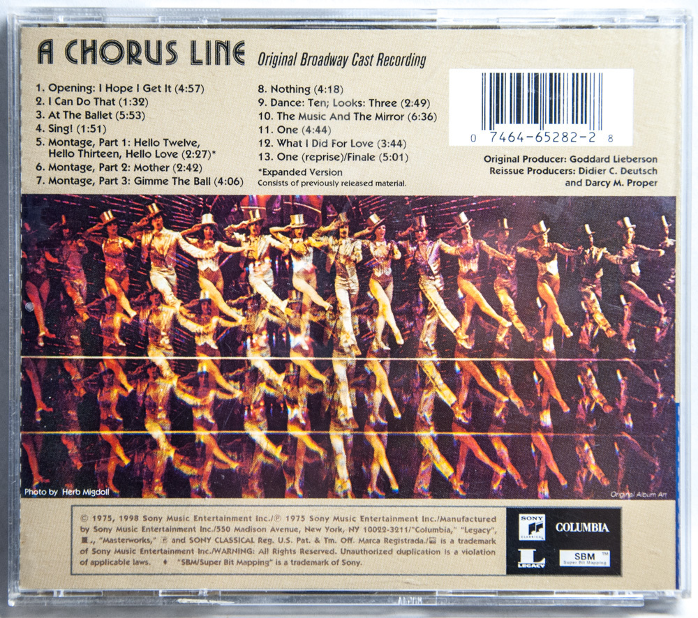 - A Chorus Line 1975 Original Broadway Cast Columbia Masterworks 1998 Audio CD
