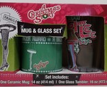 Includes ceramic mug and pint glass