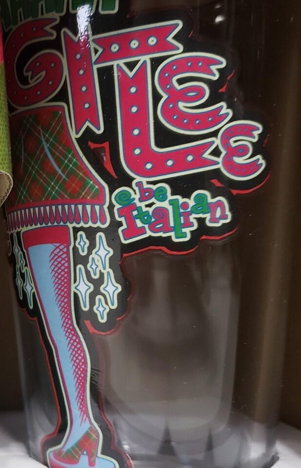 "Ahhhhhh fragile it must be Italian" message with leg lamp on pint glass