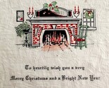 A Merry Christmas New Year Victorian Greeting Card 1900-20s Fireplace PCBG11E