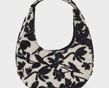 - A New Day Mini Beaded Crescent Handbag Off-White Black Floral Pattern