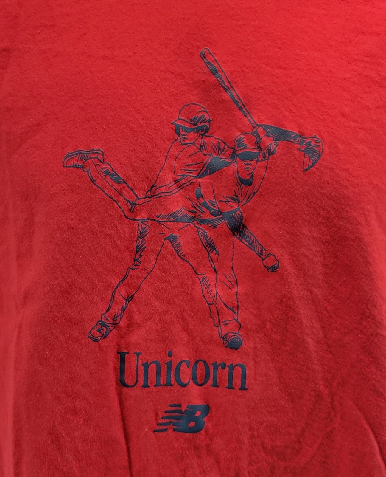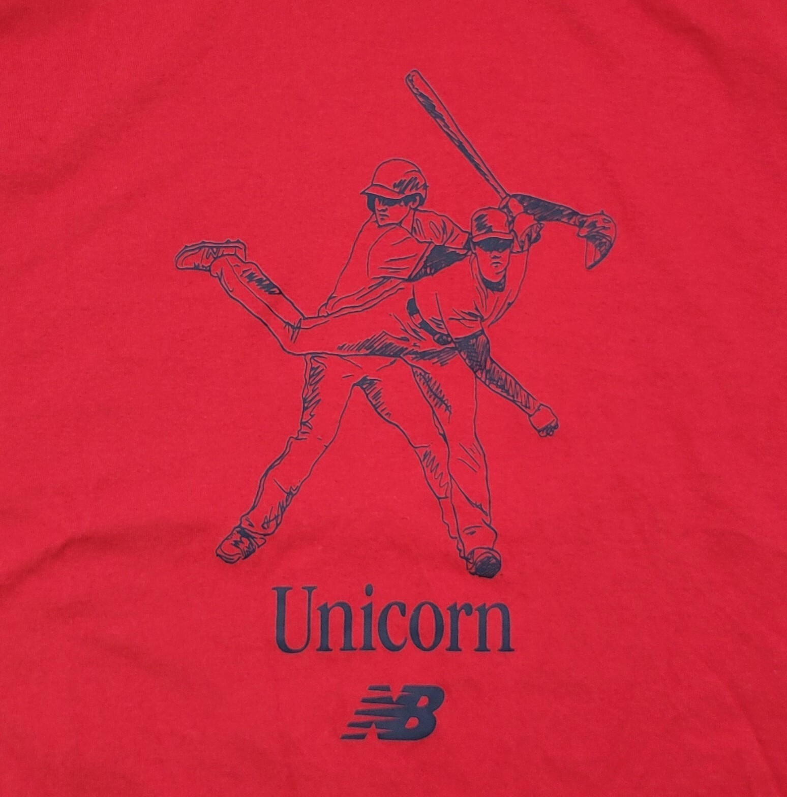 A) Rare New Balance Shohei Ohtani Baseball Unicorn Men Red Cotton T-Shirt XXL