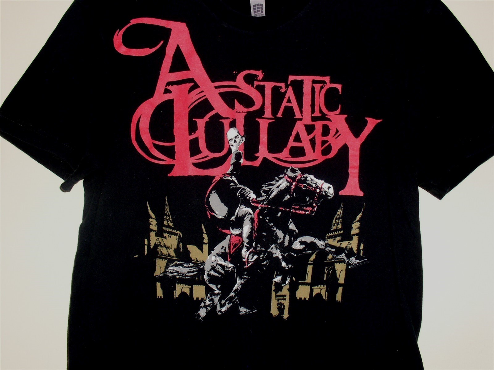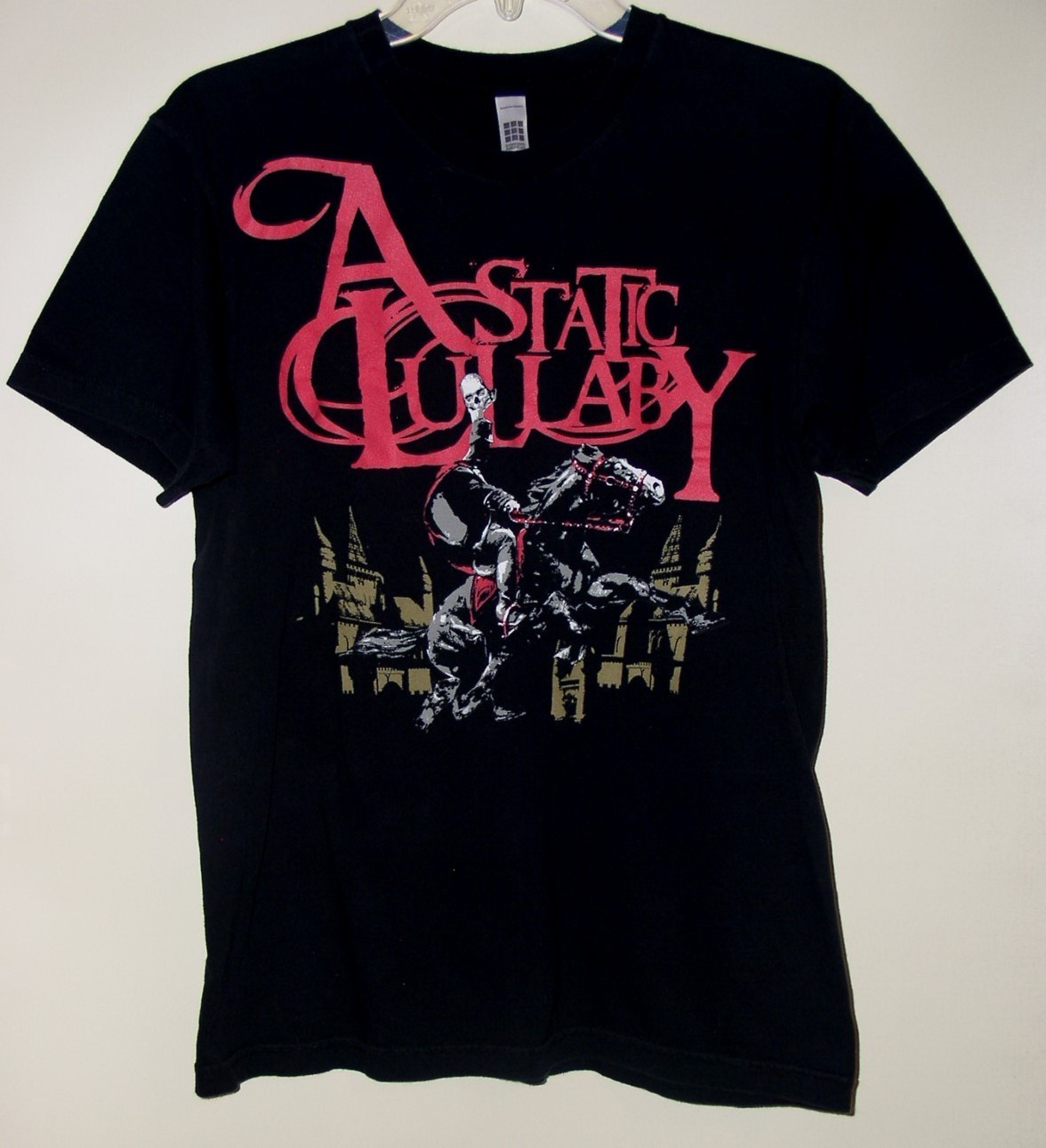 This is a very scarce, vintage t shirt entitled, "A Static Lullaby". Assumed to be a concert tour shirt, but uncertain. Could be a promo item. Tag reads: American Apparel Standard American. There is no back printing. A terrific item for the fan or collector.