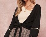 Open front with self-tie closure.??Long bishop sleeves.??Contrast seam detail.??Wide ribbed cuffs.??Cropped length.
