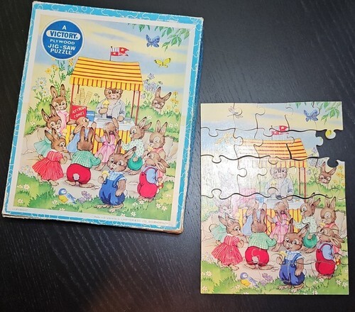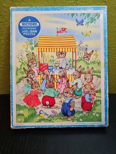 - A Victory Plywood Jig-Saw Puzzle G J Hayter & Co England Bunnies Ice Cream 1950s