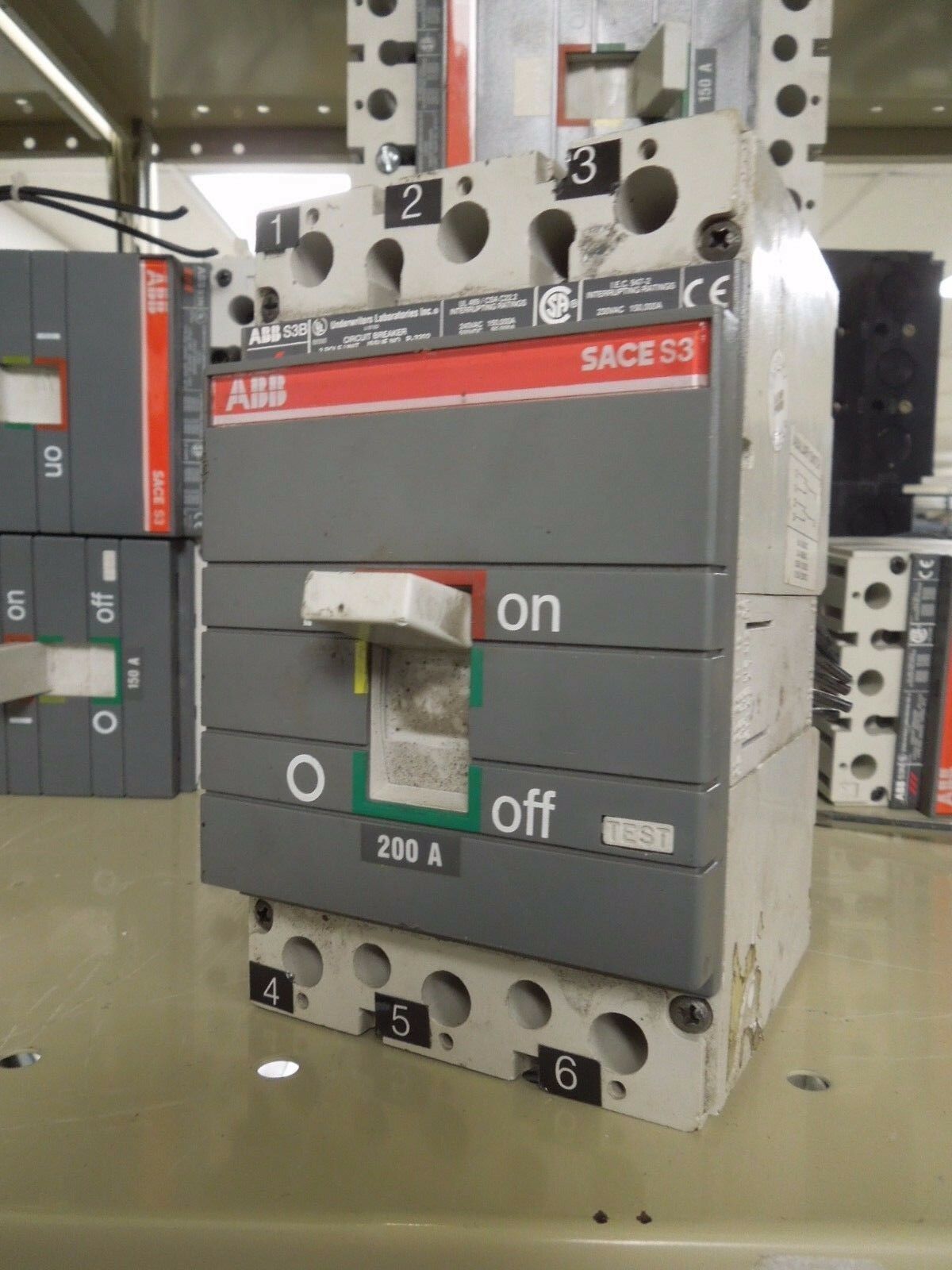 - ABB SACE S3 S3B 200A 3P 240VAC/500VDC Circuit Breaker w/ Auxiliary Switch Used