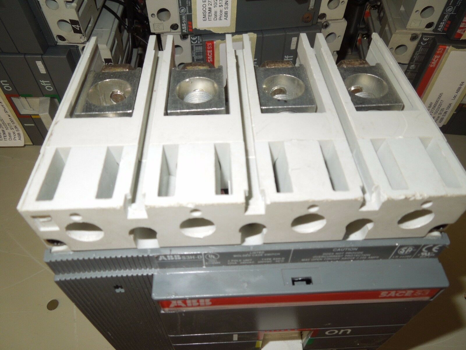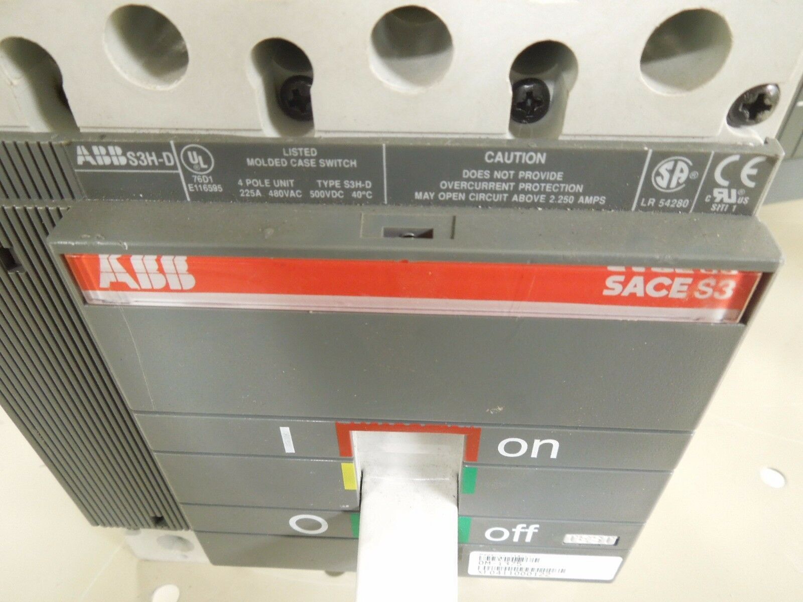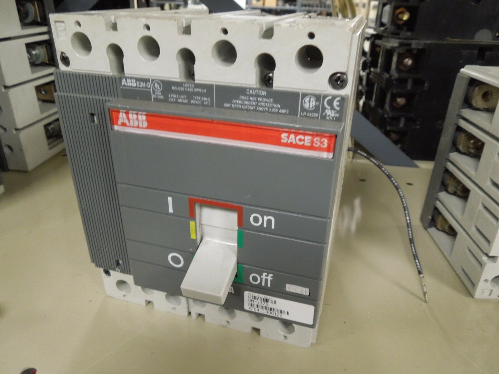 - ABB SACE S3 S3H-D 225A 4P 480V Molded Case Switch w/ Auxiliary Switch Used