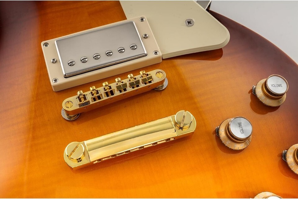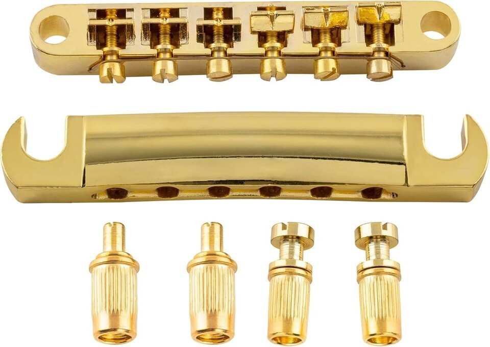 Elevate your guitar's performance with the ABR-1 Style Bridge Stop Bar Tailpiece, expertly designed for Les Paul enthusiasts. Experience enhanced tonal quality and sustain with this beautifully crafted component. Its robust construction ensures of reliable use, while the stunning gold finish complements the aesthetic of your beloved instrument.
