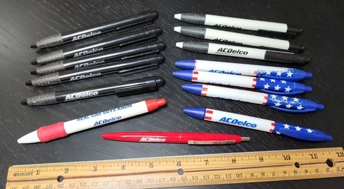 - AC Delco Ink Pens Lot of 14 Vintage Ink Pens Stars and Stripes Black White Red