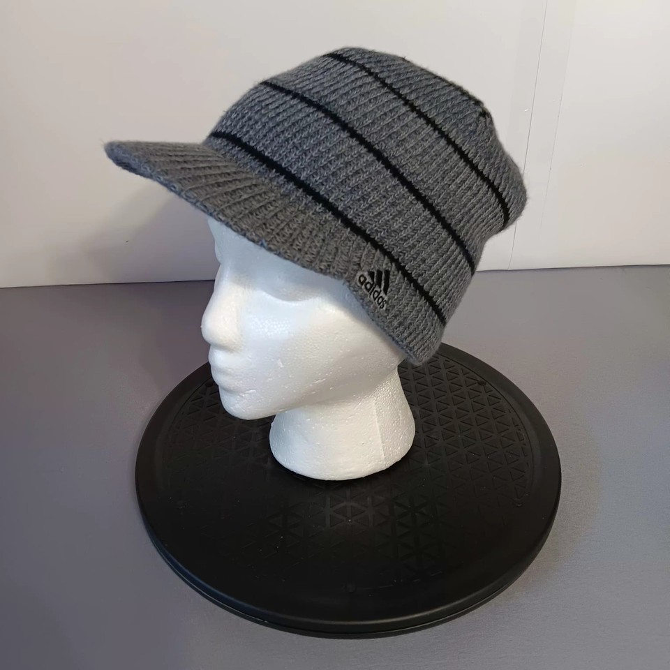 - ADIDAS Brimmer Winter Knit Beanie Hat Cap Men One Size Gray w/Black Stripes