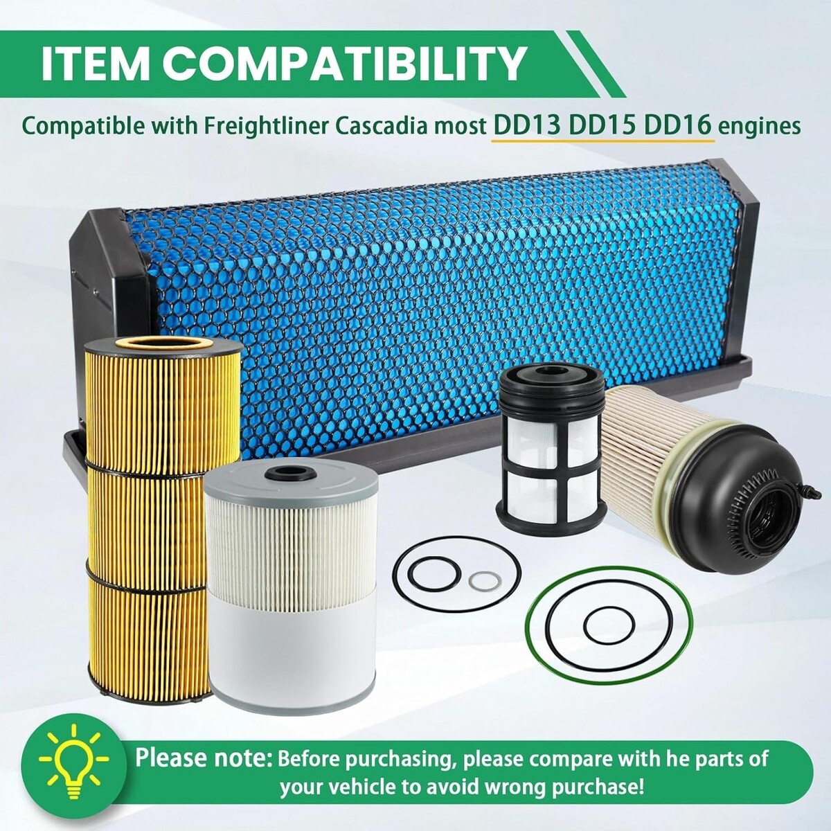AF27879 P551005 FS19915 PF9908 Filter Kit, Compatible With Freightliner Cascadia DD13 DD15 DD16 Series Engine