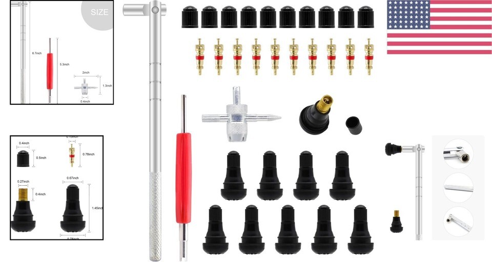 ALL-IN-ONE Valve Stem Installer with 10 TR412 Stems - Perfect for Cars & Bikes