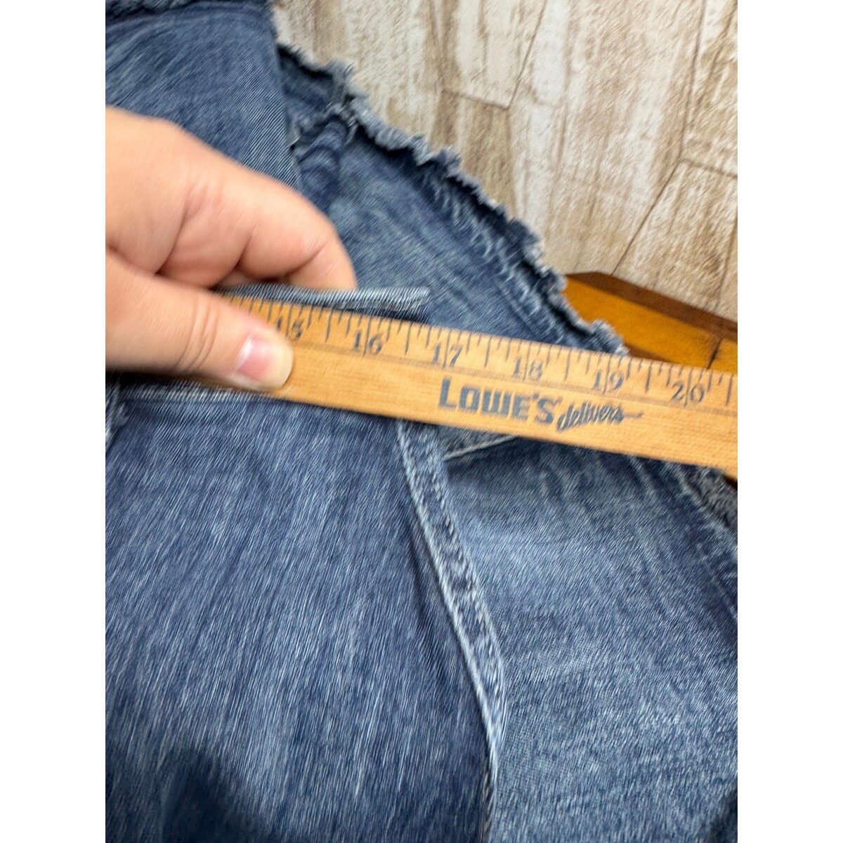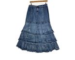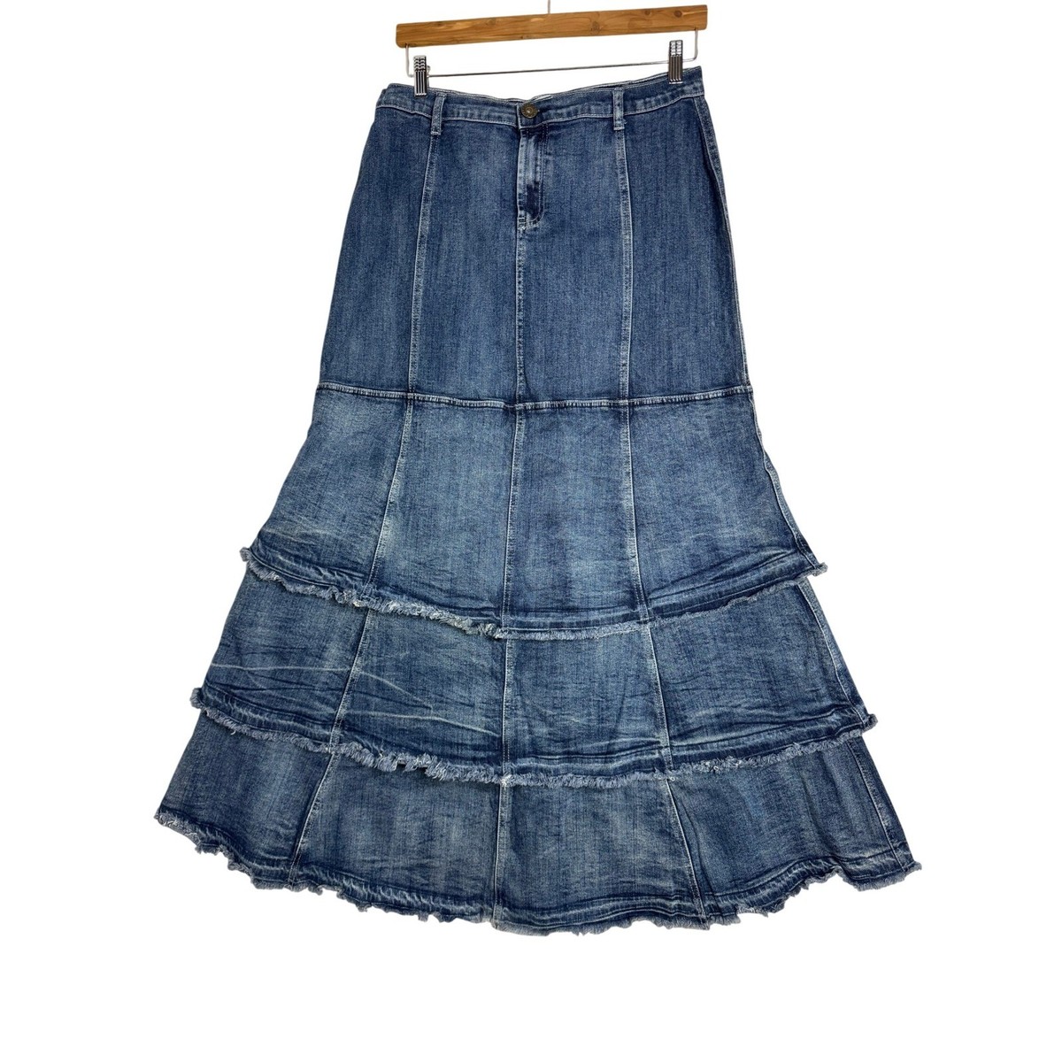 - ALSHARIFA Women's Size 12 Denim Tiered Maxi Skirt Y2K Frayed Hem Distressed Boho
