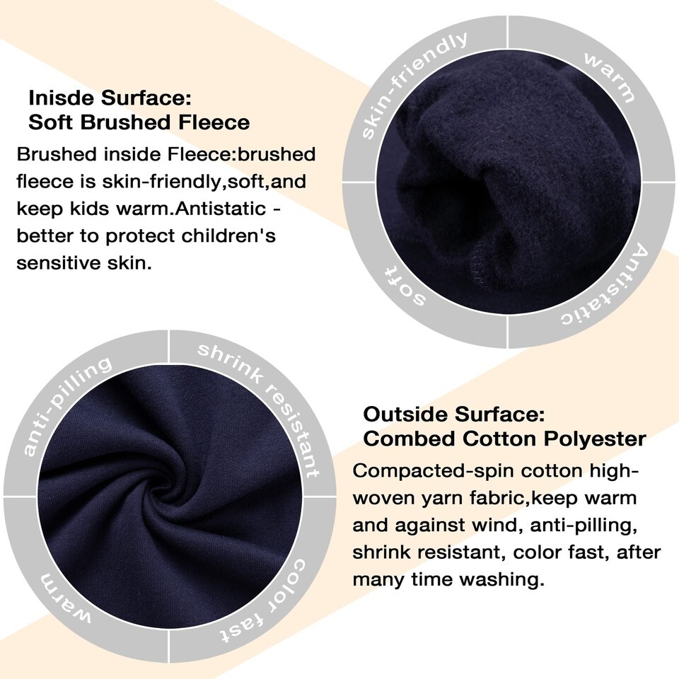 Our fabrics are made of 60% Cotton, 40% Polyester, soft brushed inside fleece make sure the softest feel and warmth.
