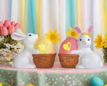 AMOYYT Easter Bunny Figurines Resin LED Rabbit Statue 4.5in Set of 2