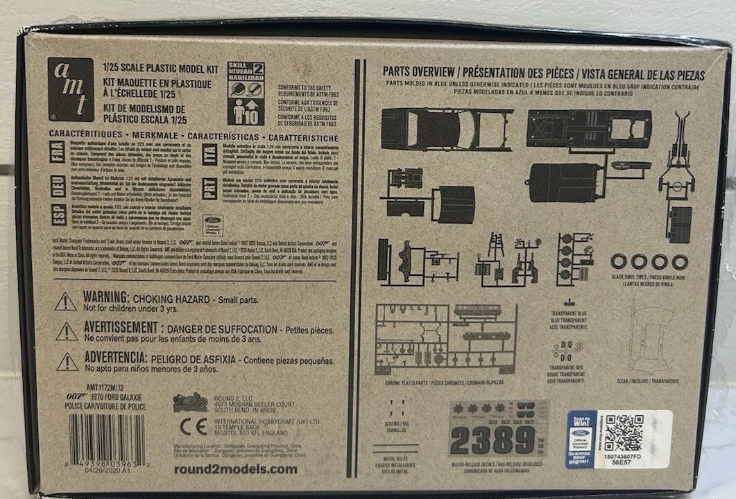 - AMT 1/25 007 1970 Ford Galaxie Police Car Plastic Model Kit Opened