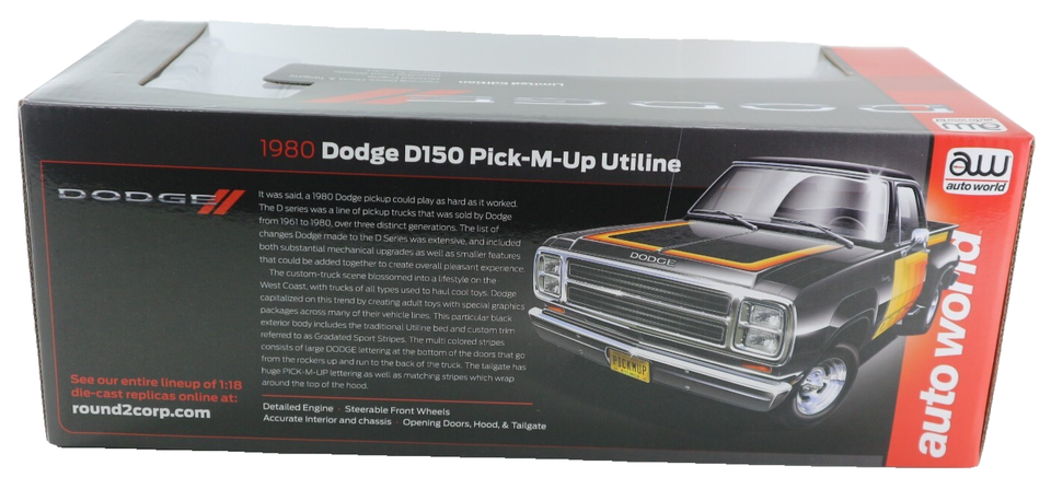 - AMT 1980 Dodge D150 Pick-M-Up Step side Utiline Diecast 1:18 scale Model Truck