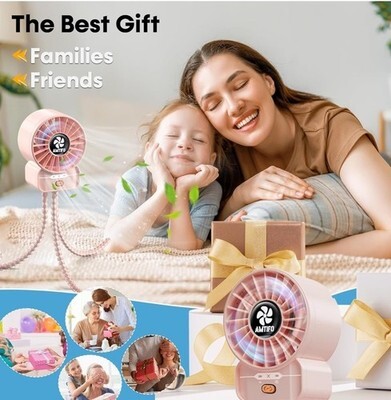 AMTIFO Pink Stroller Fan - USB Rechargeable, Quiet Cooling, 4 Mini,